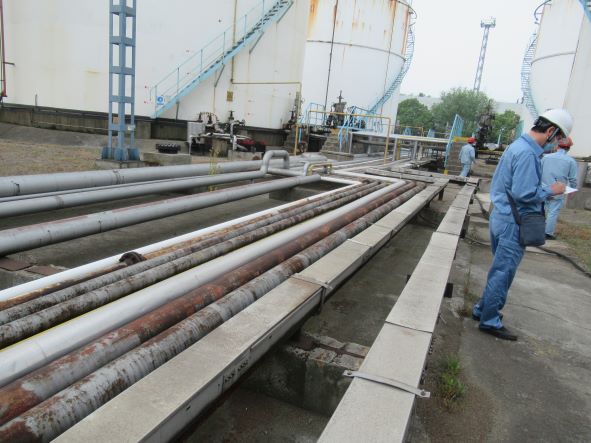 地理位置及周邊環(huán)境: 1#聯(lián)合罐區(qū)處于煉油區(qū)域大油池區(qū)內(nèi)。其東側(cè)為氣加硫磺裝置、堿渣儲(chǔ)罐、催化劑倉庫、2#重整聯(lián)合裝置,南側(cè)為污水處理裝置、黃浦江,東南側(cè)為煉油綜合大樓,西側(cè)為石油站罐區(qū),西北側(cè)為2#聯(lián)合罐區(qū),北側(cè)為3#硫磺回收裝置、140萬噸/年加氫裂化裝置; 2#聯(lián)合罐區(qū)地塊位于上海高橋石化內(nèi)部北側(cè)位置,由四個(gè)區(qū)域組成,從東往西依次為:16#罐區(qū)(分2處)、15#罐區(qū)、17#罐區(qū),罐區(qū)分布比較分散。16#罐區(qū)分為2部分,東側(cè)都靠近浦東北路,路對面為居民區(qū);西側(cè)為廠內(nèi)道路香樟路,路對面為2#重整加氫裝置、3#催化裝置、3#加氫裝置;北側(cè)靠近中高公路,公路對面為東生供用電器材廠;南側(cè)為廠內(nèi)道路。15#罐區(qū)位于聯(lián)合罐區(qū)中部,北側(cè)為廠內(nèi)道路梧桐路,再往北為中高公路;東北側(cè)為廠內(nèi)道路廣玉蘭路,路對面為1#延遲焦化裝置和2#重整加氫裝置;東南側(cè)為廠內(nèi)道路石榴路,石榴路對面為新硫磺裝置;西南側(cè)為廠內(nèi)道路楓揚(yáng)路,路對面為17#罐區(qū)。17#罐區(qū)位于2#聯(lián)合罐區(qū)最西部,其東面為廠內(nèi)道路楓揚(yáng)路及15#罐區(qū);南側(cè)為石油站罐區(qū);西面為廠內(nèi)道路;北側(cè)為空地,空地以北為居民小區(qū); 3#聯(lián)合罐區(qū)裝置的東北面是中石化加油站,再往東北面是浦東北路,南面是廠內(nèi)道路,西面是管架、香樟路,西北面是倉庫和地磅; #4聯(lián)合罐區(qū)北部東側(cè)為油管路,隔路為上海云峰倉儲(chǔ)公司和高華倉儲(chǔ);南部東側(cè)為凌海路,隔路上海外高橋保稅物流園區(qū);南側(cè)為從東往西為高新河、大寨河,再往南為外環(huán)高速;西側(cè)為曹家浜路,隔曹家浜路為亞隆集裝箱儲(chǔ)運(yùn)有限公司; #5聯(lián)合罐區(qū)位于浦東北路3270號,東側(cè)為居民小區(qū)南新西園;南側(cè)為速通物流上海外高橋網(wǎng)點(diǎn)、高西村委會(huì)、家家樂公寓;西側(cè)為浦東北路,隔路為立昌三堆場;北側(cè)為上海燕錦物流有限公司;西北為上海杜邦農(nóng)化有限公司 | |